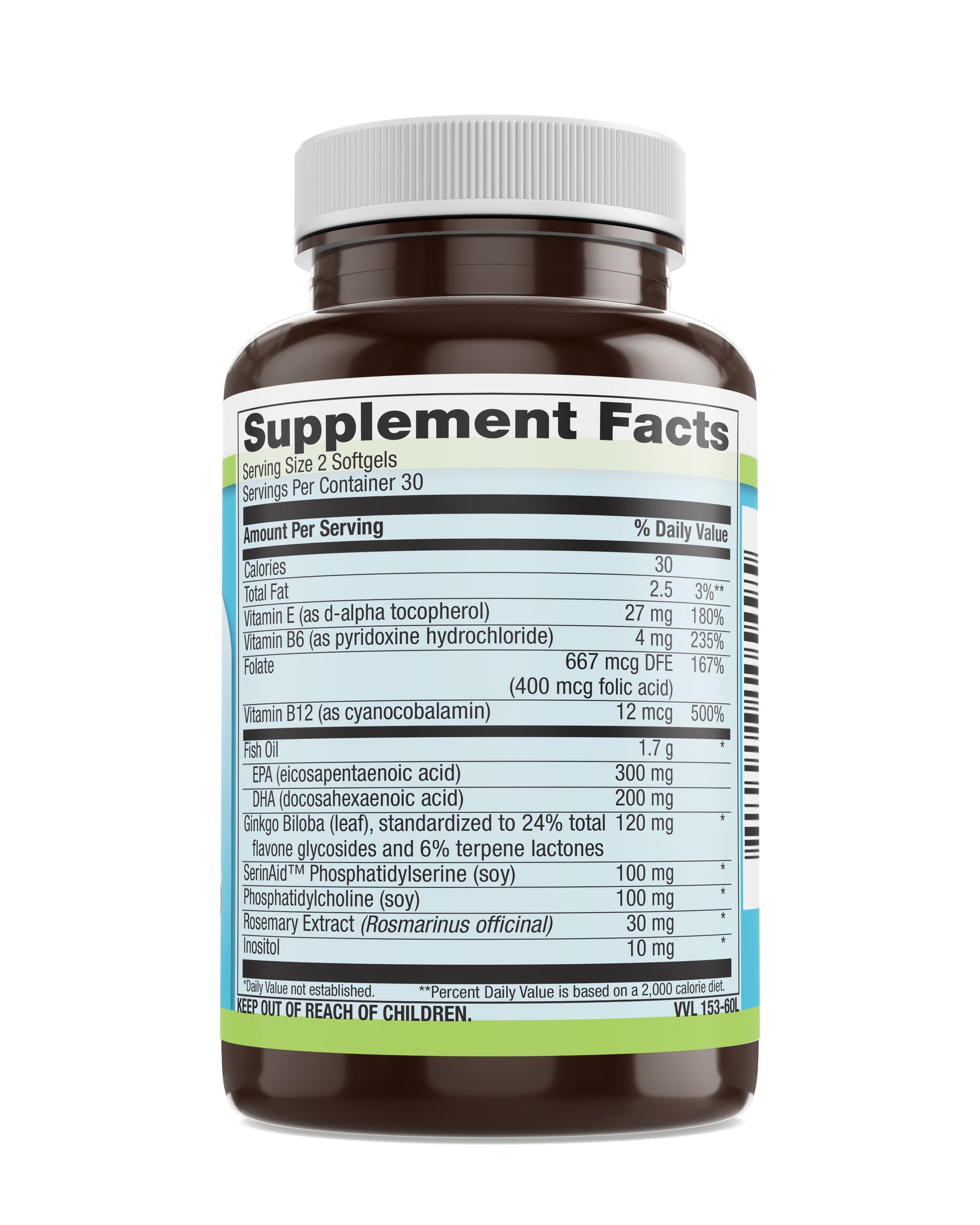 - Contains vitamin B6, B12, folate, vitamin E, and inositol for maintaining brain cell health