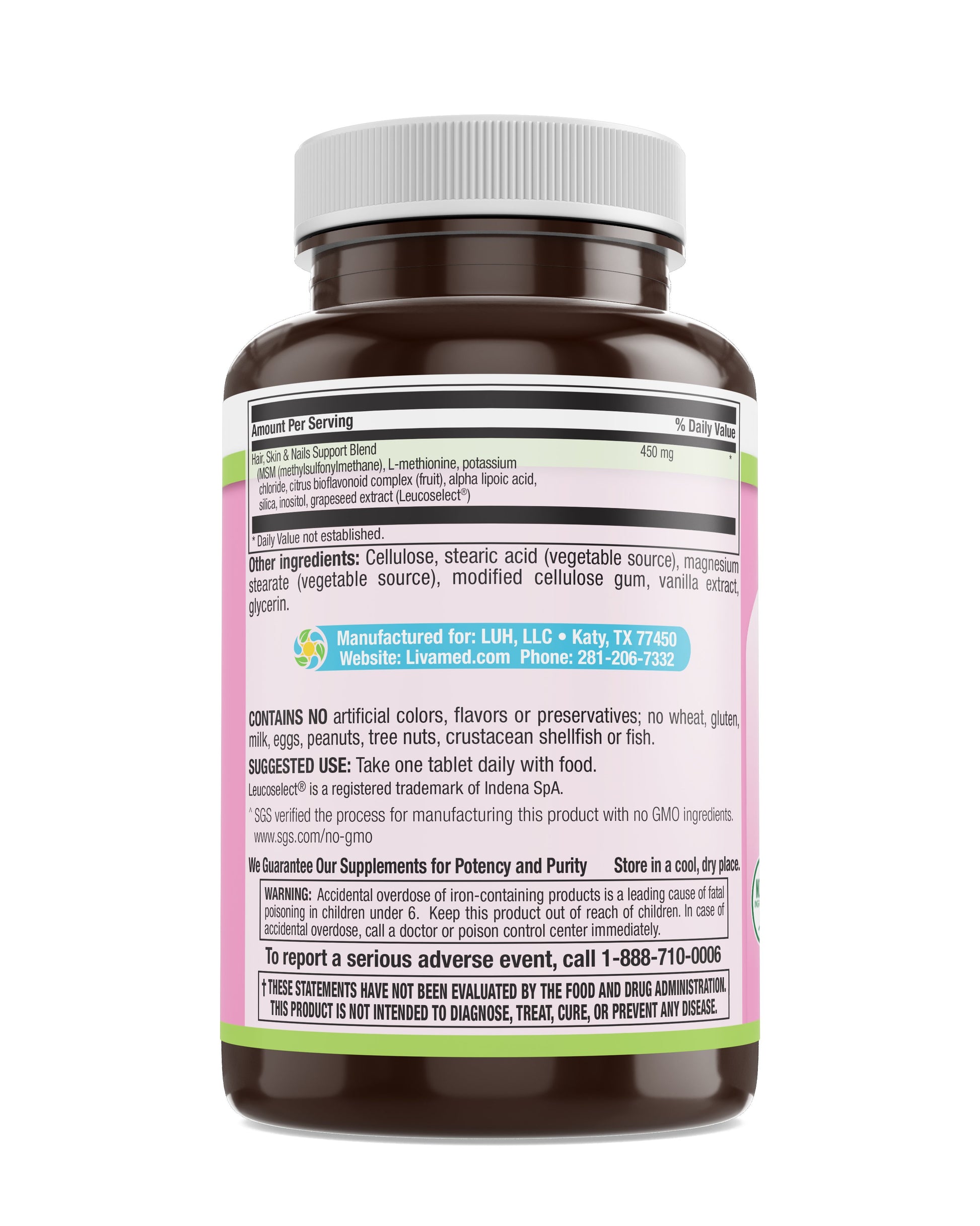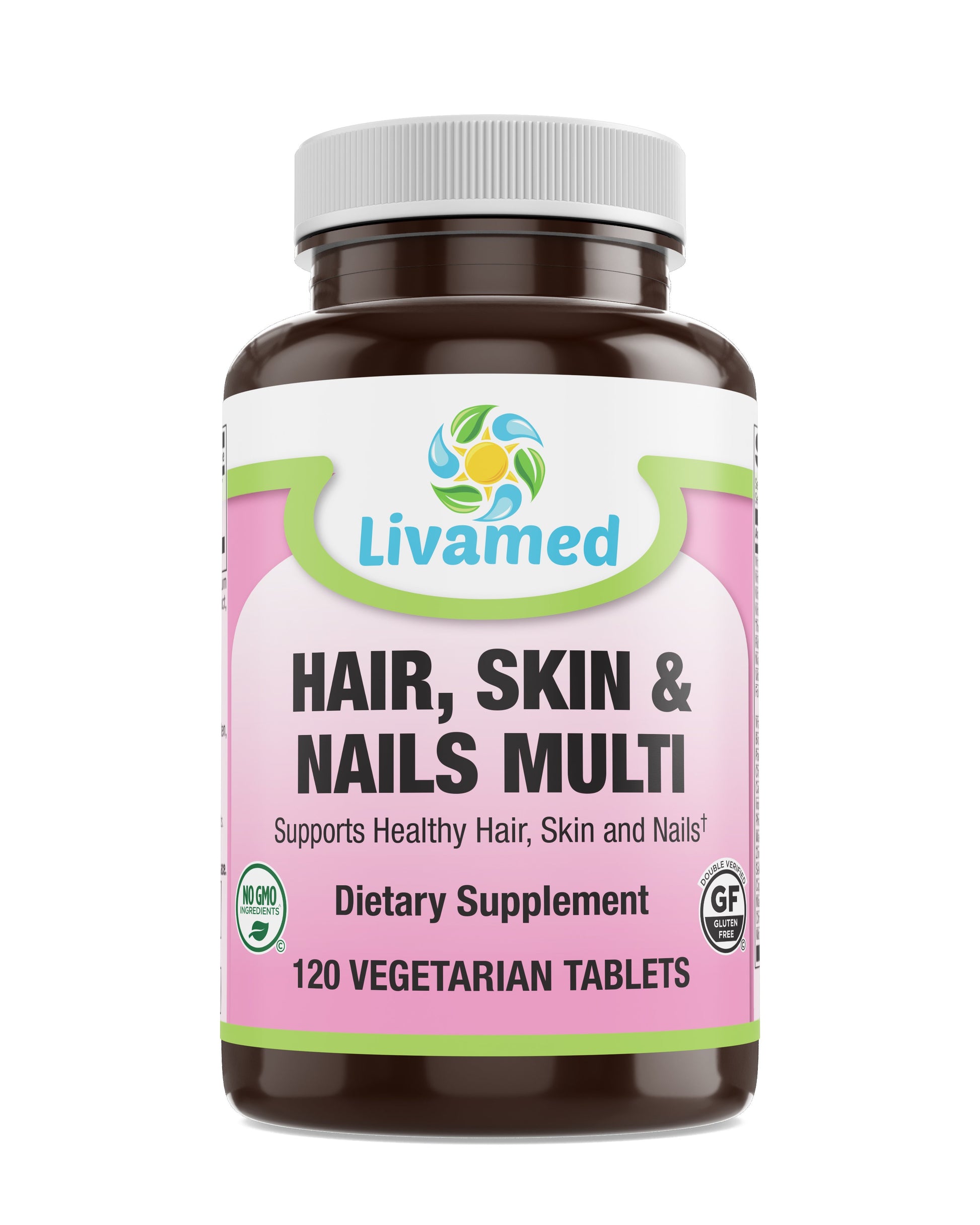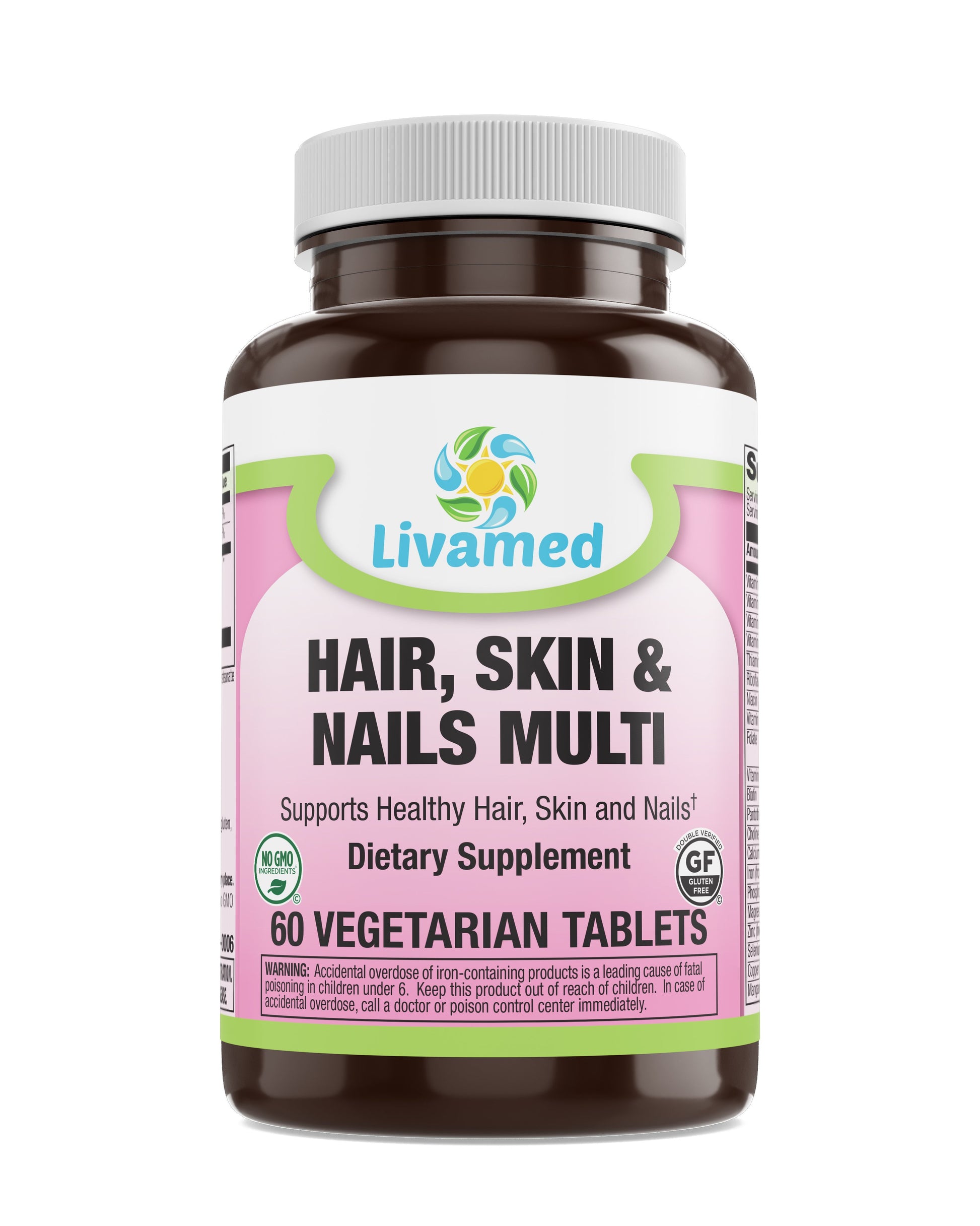 Livamed Hair, Skin & Nails Multivitamin & Multimineral is designed to provide structure, strength, support and elasticity to hair, skin and nails. Hair, Skin & Nails Multivitamin combines the most widely recognized hair, skin and nail enhancing nutrients in their most potent forms. The result is the world's best, most advanced internal beautifying herbal supplement ever developed.