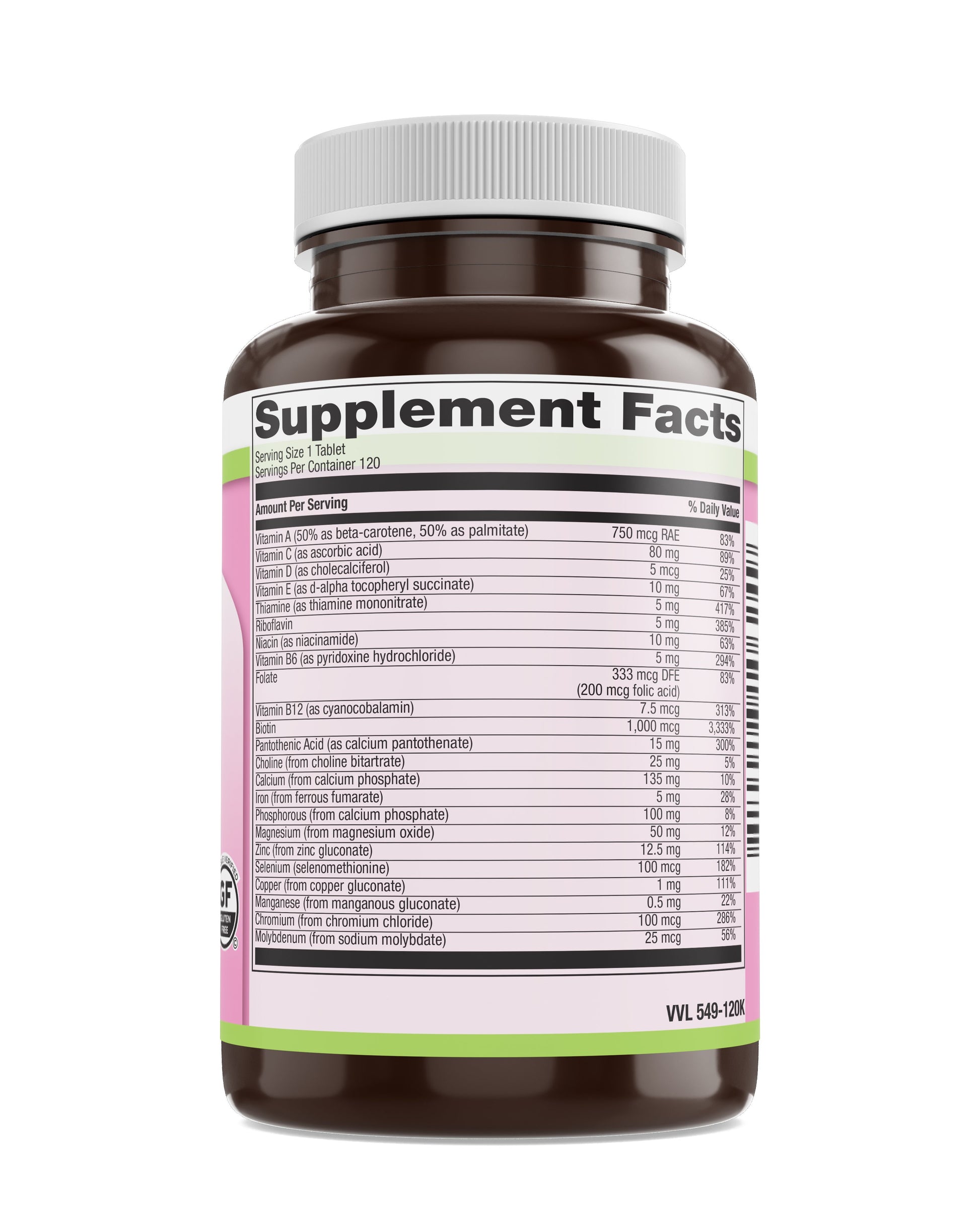 - COMPLETE MULTIVITAMIN WITH BEAUTY BENEFIT: This complete multivitamin contains 23 vitamins & minerals at 100% or more daily value, including the full B vitamin complex to help convert food into energy*