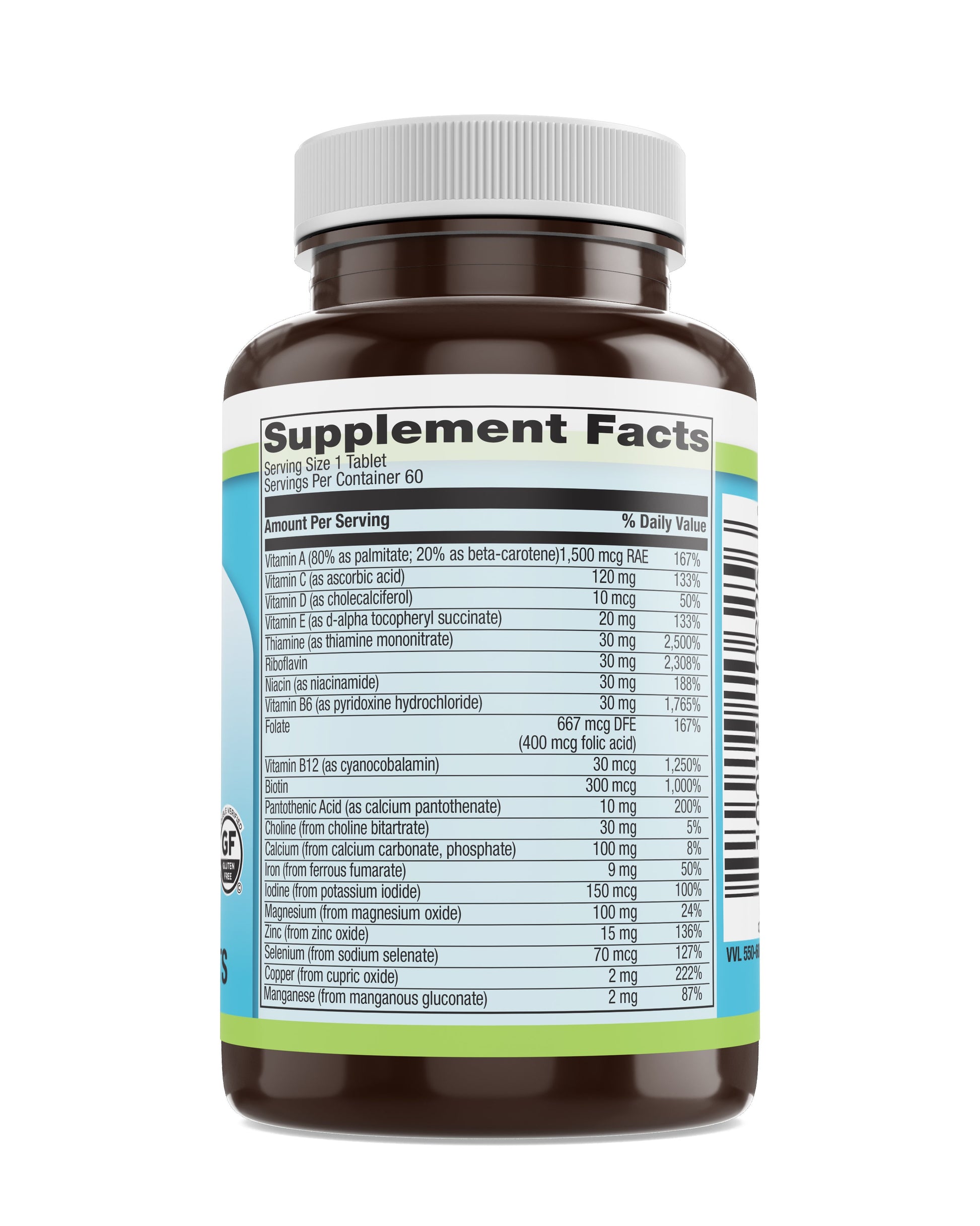 - COMPLETE FORMULA: Includes Vitamins A, C, D3, E, K2, B-Complex (Folate, B6, B12, Biotin), and Essential Minerals such as Calcium, Magnesium, Iron, Zinc, Selenium, & Iodine.