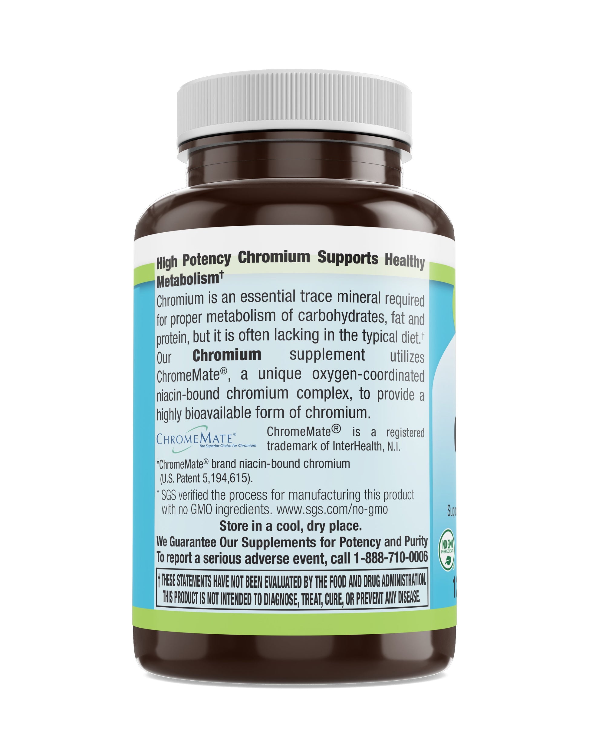 Chromium Picolinate 200 mcg (ChromeMate® GTF) Veg Tabs 120 Count XXX
