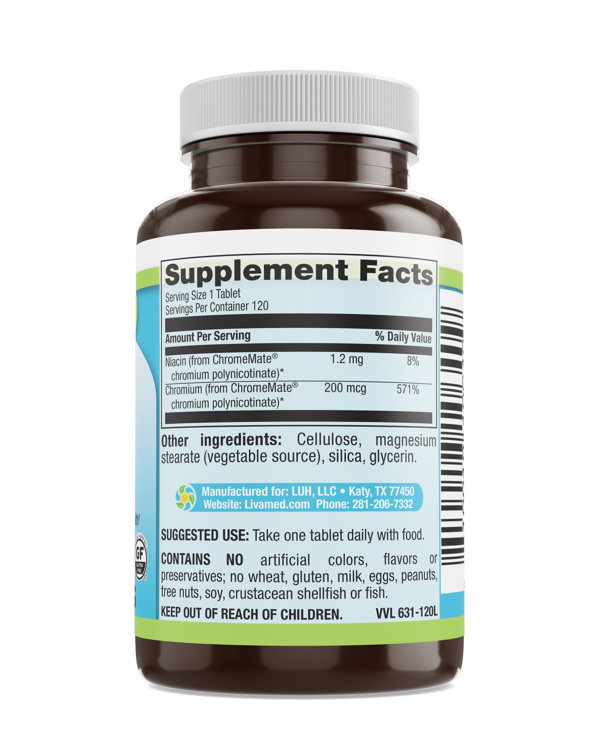 - A YEAST-FREE CHROMIUM SOLUTION. Supports healthy blood sugar levels, Livamed Chromium contains 200 mcg per suggested serving.
