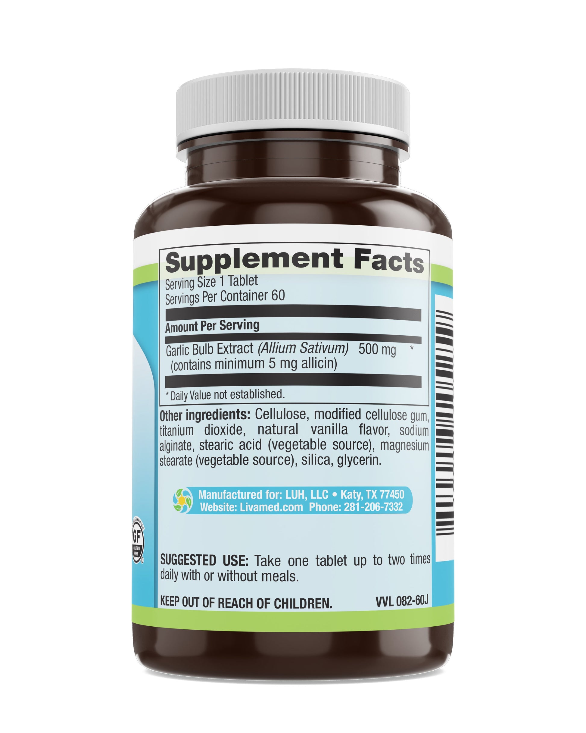 Livamed - High Allicin Garlic 500 mg Odor Free Veg Tabs 60 Count