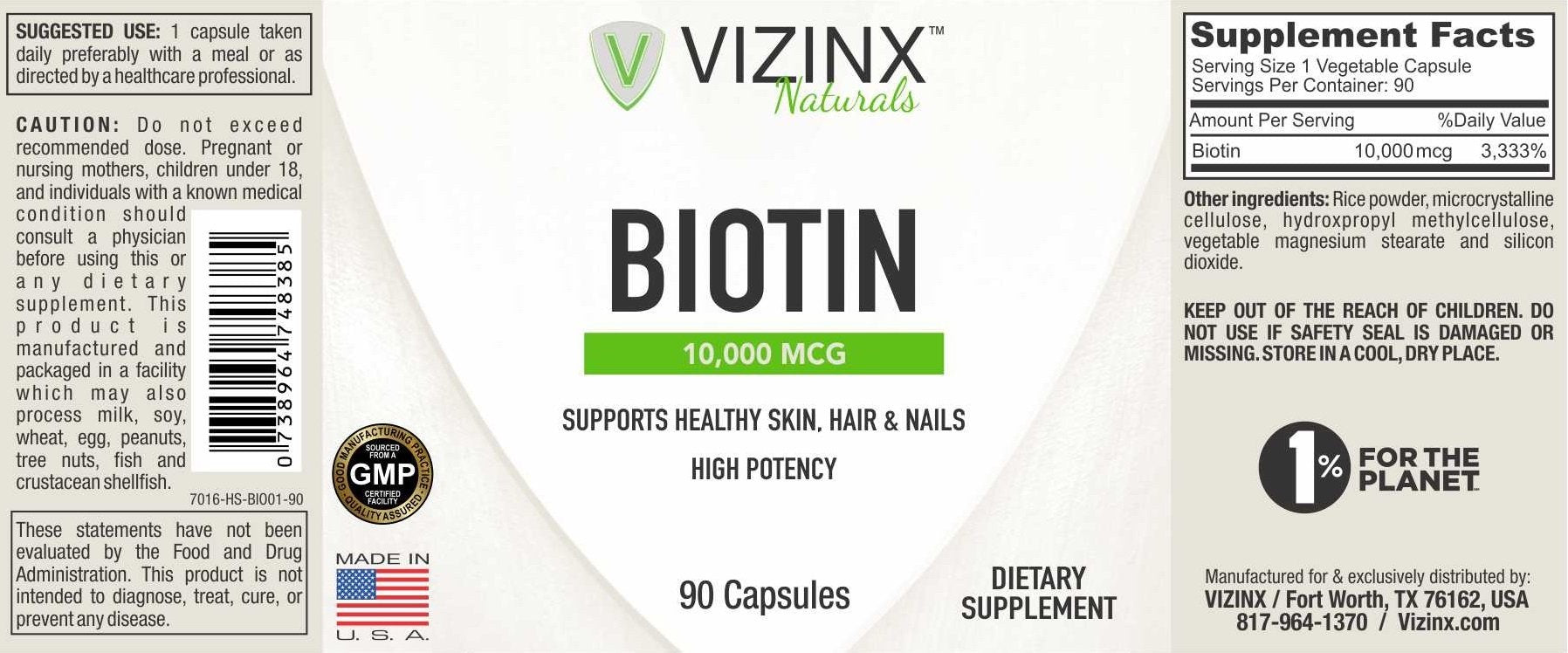 VIZINX Biotin 10,000 MCG - Supports Healthy Skin, Hair & Nails, 90 Vegetarian Capsules